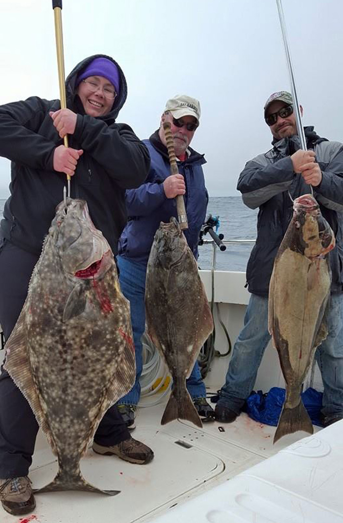 A trio of happy anglers had themselves quite a day on Monday, scoring limits of Pacific halibut while fishing out of Eureka with Gary Blasi of Full Throttle Sport Fishing. The halibut season opened June 1 and will close again on June 15. Photo courtesy of Full Throttle Sport Fishing