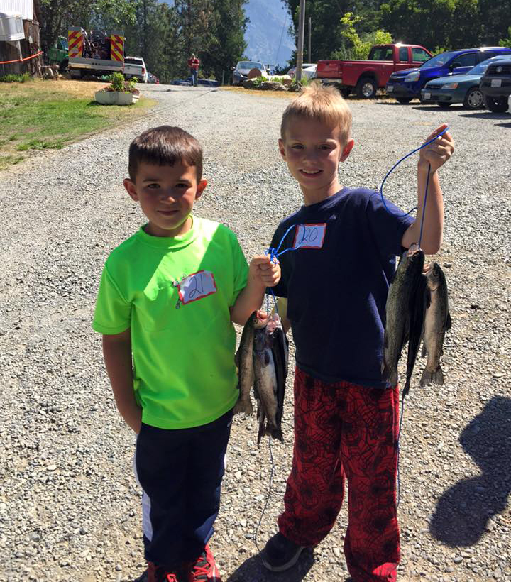 Young anglers Blake Santos, pictured left, and Conner Jones show off their catch from last Saturday’s SkyCrest Lake Youth Fish Derby held at SkyCrest Lake in Burnt Ranch. Both Santos and Jones, who reside in McKinleyville, caught their limit of trout using bobbers and salmon eggs. Photo courtesy of Mark Santos