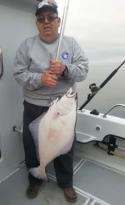 Lewis Richey of Fortuna, who was fishing as part of the Humboldt Veterans group, landed a nice Halibut on Monday out of Eureka. Martin Abshire, who runs the boat “Reel Time,” volunteered his time to take Richey as well as fellow veterans Steve Emmons of Fortuna, and Eric Hollenbeck of Eureka down to Cape Mendocino for a fun day of fishing.