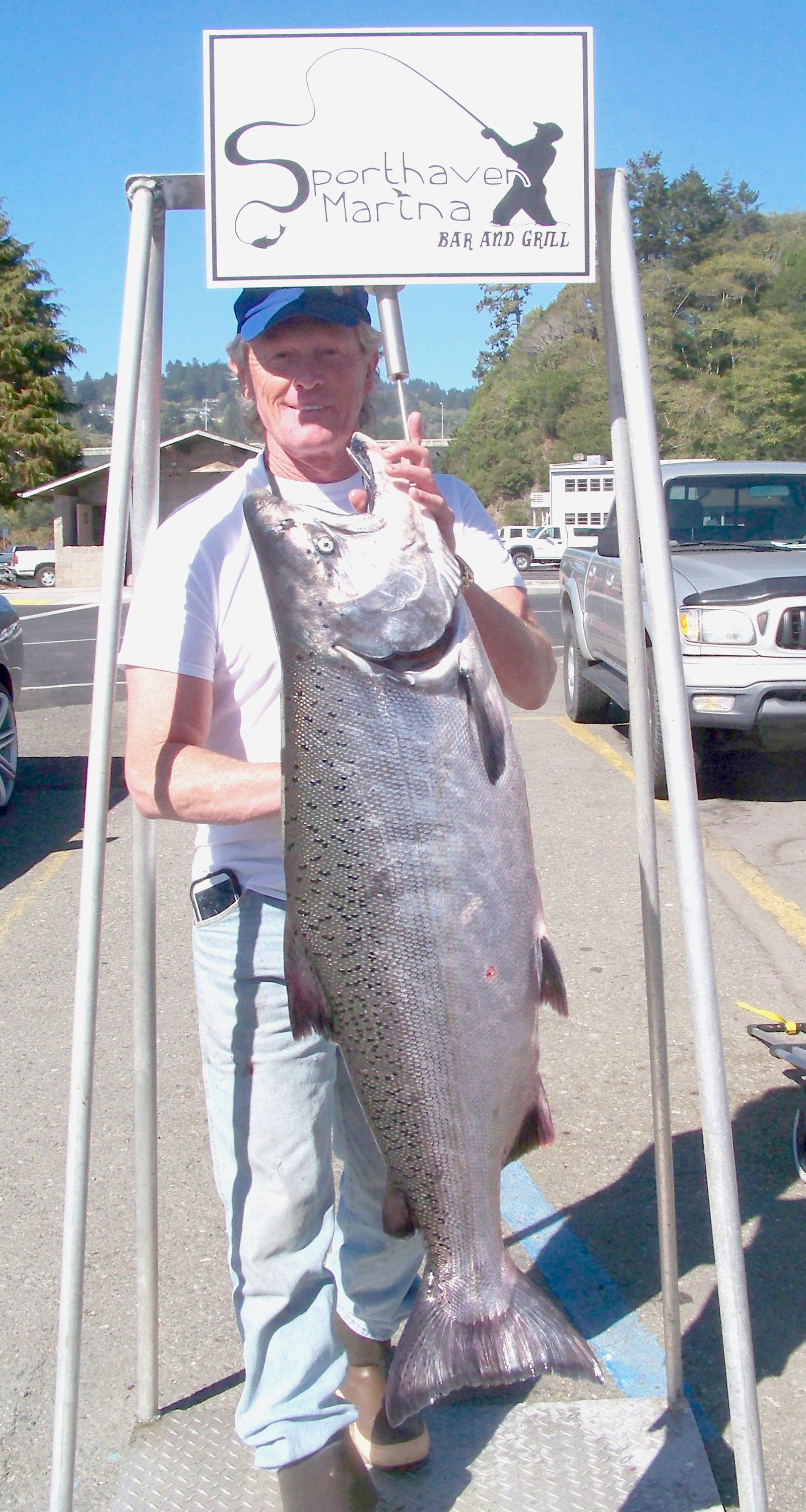 Mark Rowland is currently in first place in the Chetco Bubble season Hawg Derby with this 45-pound salmon. The big king was landed on October 2. First place in the derby, which ends Sunday, is worth $3,000