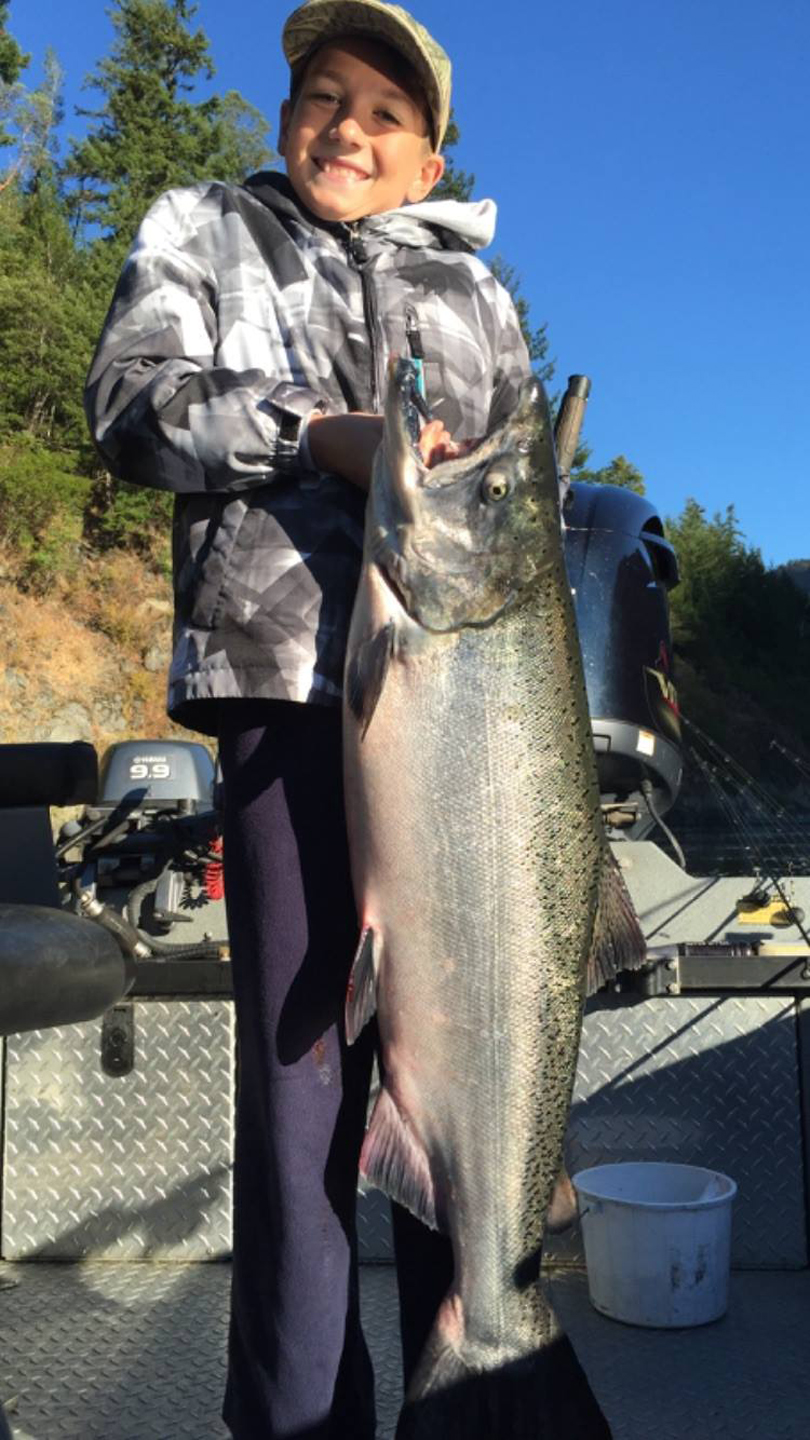 Eleven year-old Connor Devlin of San Jose had all he could handle in landing this big Klamath River Chinook salmon. Devlin was fishing with Guide John Klar. Photo courtesy of John Klar’s Guide Service