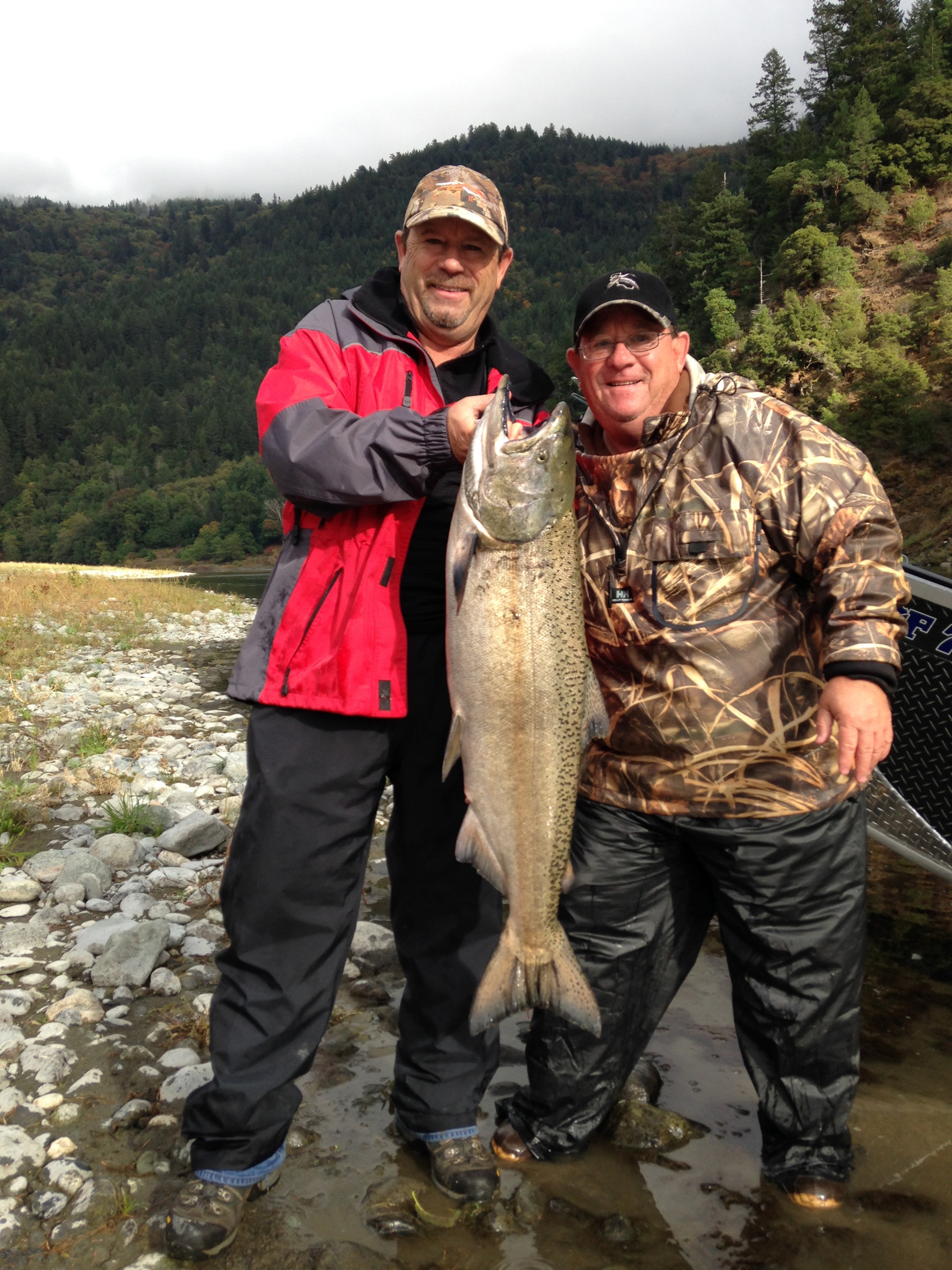 Mike Zaslove, left, along with his brother Jim landed this nice late-season Chinook salmon last Saturday on the Klamath River. The fall salmon run is starting to wind down, but a few fresh fish are still entering the river.