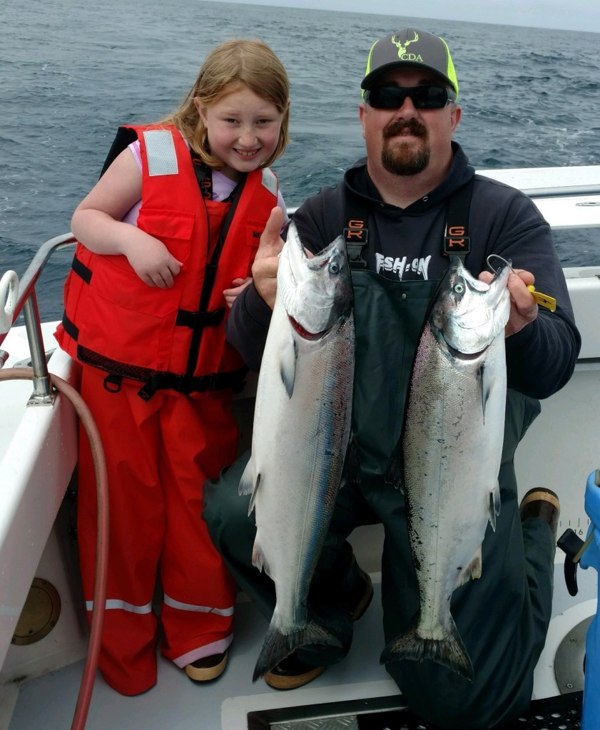 Monday and Tuesday were really good for salmon out of Eureka reports Tim Klassen of Reel Steel Sport Fishing. “There seems to be quite a few fish around, but they’re spread out,” said Klassen. “The best bite has been between the 47 and 53 out in 38 to 40 fathoms. The fish are really deep, from 180 to 200 feet on the wire. There’s some activity on the inside, but most of the birds and bait have been in deeper water. The salmon are a better grade than last year, with most averaging right around eight to 10 pounds. There’s some shakers around as well as silvers.”