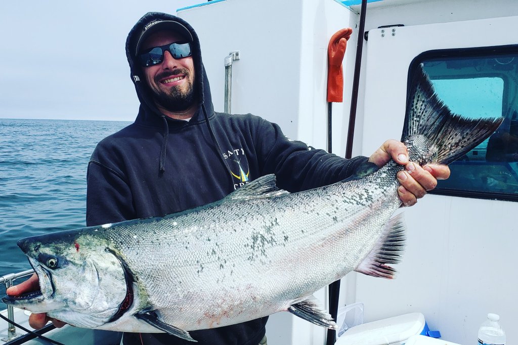 According to Tyler Vaughn, who’s running the Wind Rose, the salmon bite has been slow this week. He said, “Most of the kings being caught are out in deep water and on the bottom. There’s been lots of bait on the reef, but it’s been loaded with silvers. There are a few keeper kings in there, but you have to wade through a lot of fish. The rockfish bite is going well, we’re catching a lot more variety. And the lingcod are showing in bigger numbers now. We’re getting close to limits on each trip,” Vaughn added.