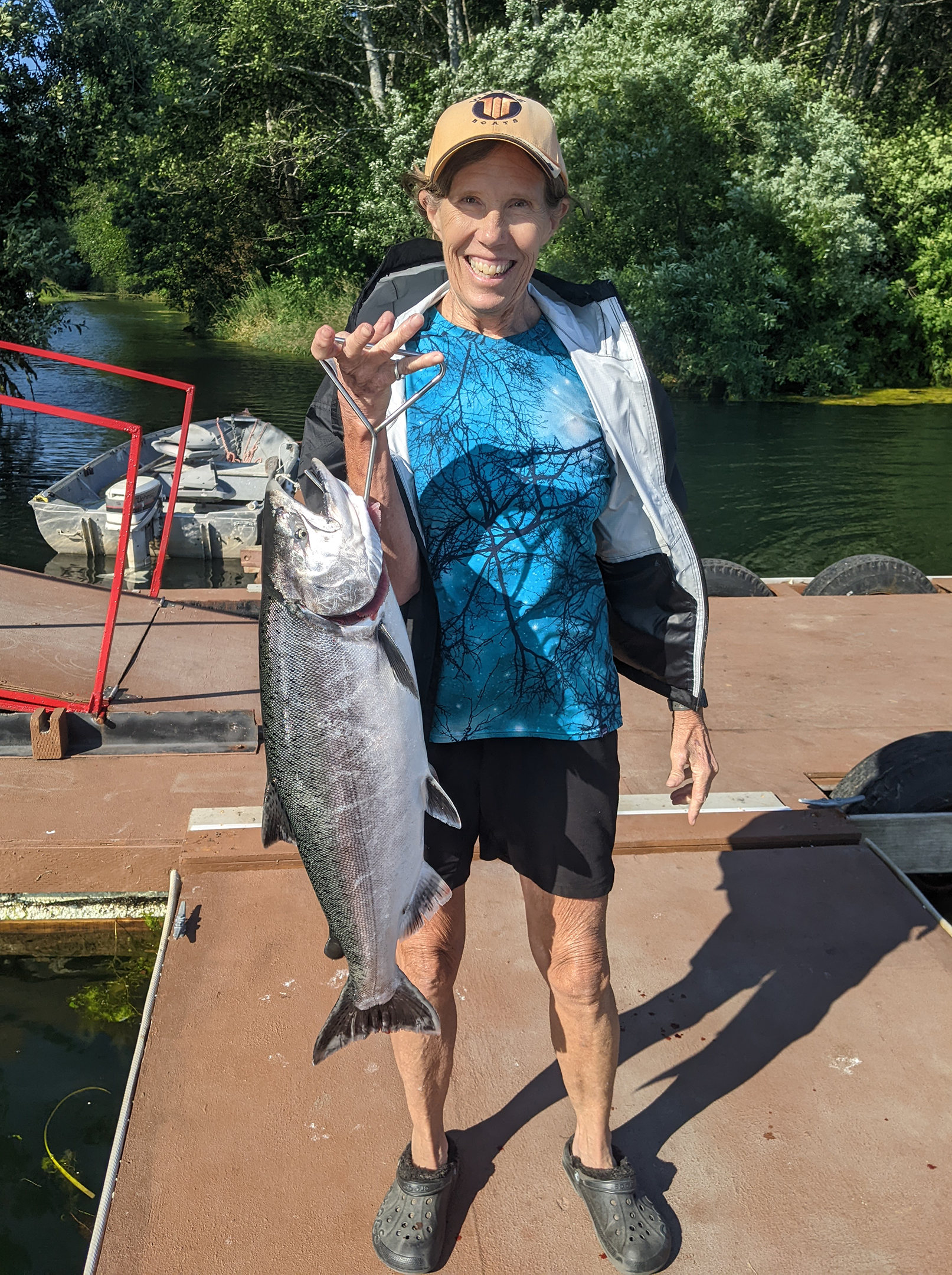 According to Martin, the salmon fishing improved early this week on the Rogue Bay. “Monday was the best day so far this season. Fishing has been good in front of the Jot’s dock. Some of the kings are more than 20 pounds. Hot weather inland will keep water temperatures above 70, forcing salmon to hold up in the bay.”