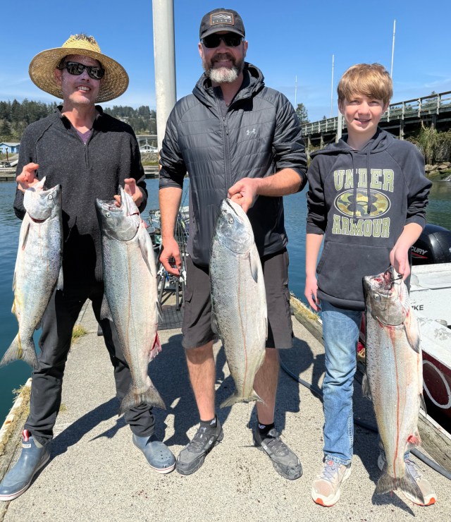 The bite has remained steady, with catch rates hovering around a fish per rod and plenty of boats boxing their two-kings-per-person limits. The majority of fish have been smaller, 5- to 8-pound “feeder kings,” but a growing number of larger, springer-size Chinook are showing, pushing the average size closer to 10 pounds as the week progressed.